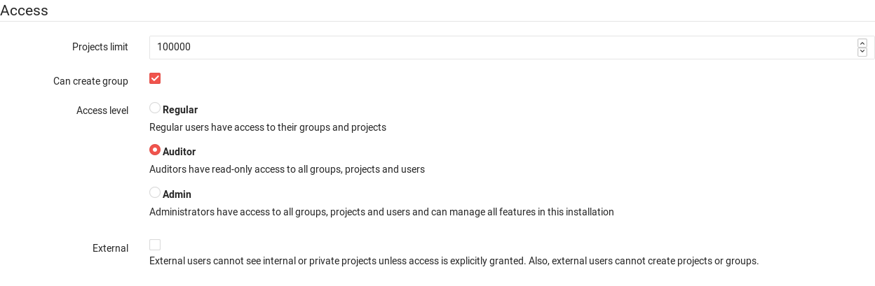 - If particular users need visibility or access to most of all projects in your GitLab instance, instead of manually adding the user to all projects, you can simply create an Auditor user and share the credentials with those that you want to grant access to.