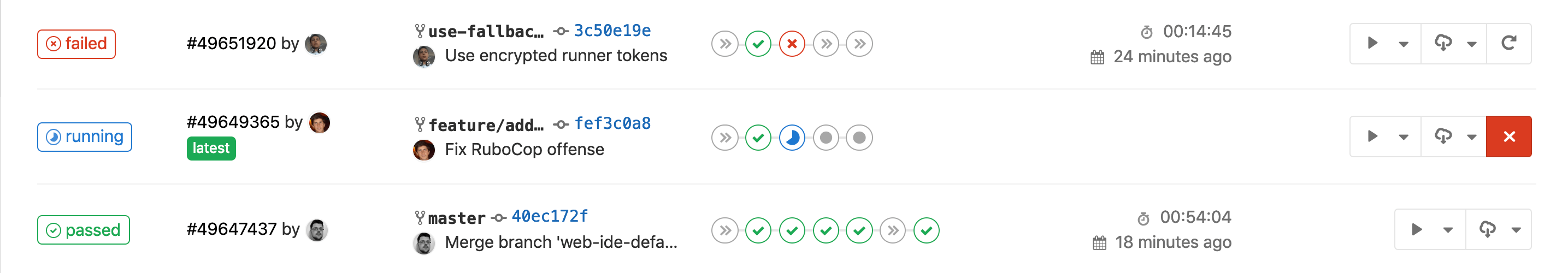 You create the strategy for your app and GitLab runs the pipeline for you according to what you've defined. Your pipeline status is also displayed by GitLab: