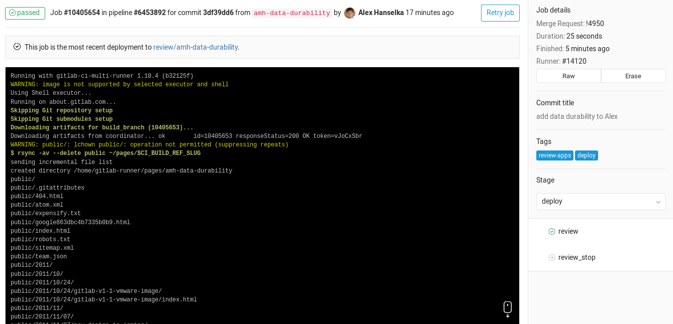 Clicking on it you will be directed to the jobs page for that specific commit.
