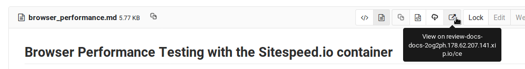 Once set up, the review app link in the merge request widget can take you directly to the pages changed, making it easier and faster to preview proposed modifications.