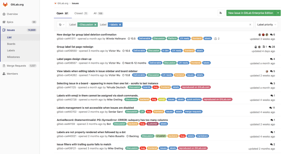 Filtering issues, merge requests and epics by label