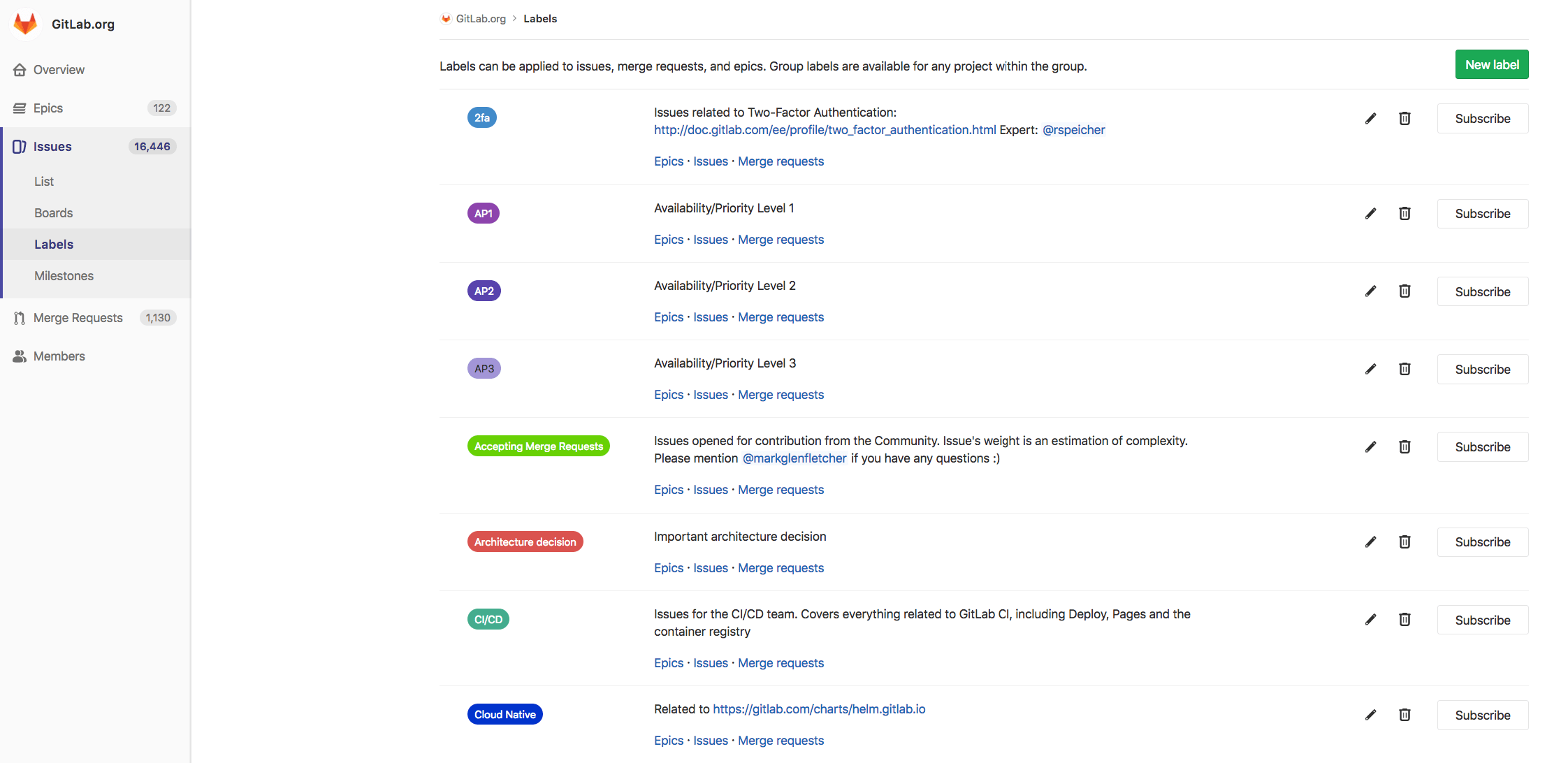 Subscribing to labels