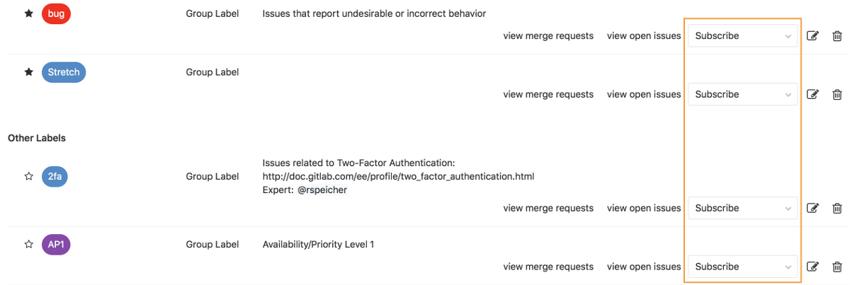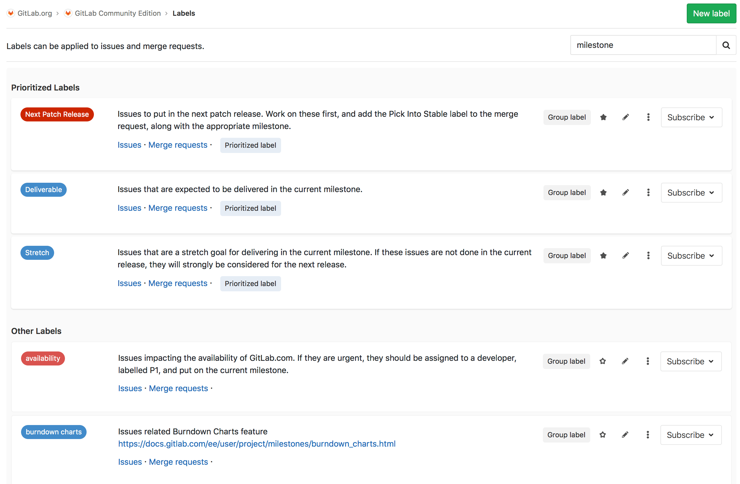 - Group labels can be assigned to any issue or merge request of any project in that group or any subgroups of the group.