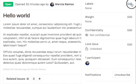 Every issue and merge request can be assigned any number of labels. The labels are visible on every issue and merge request page, in the sidebar. They are also visible in the issue board. From the sidebar, you can assign or unassign a label to the object (i.e. label or unlabel it). You can also perform this as a quick action in a comment.