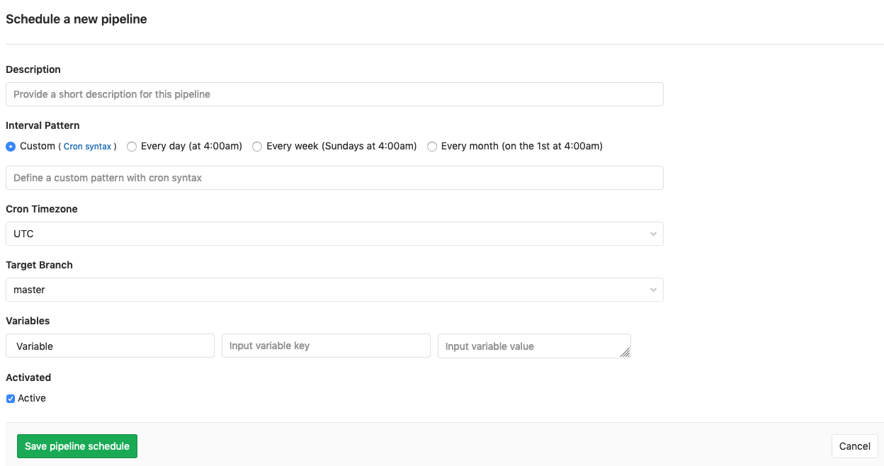 - Navigate to the project's CI / CD > Schedules page.