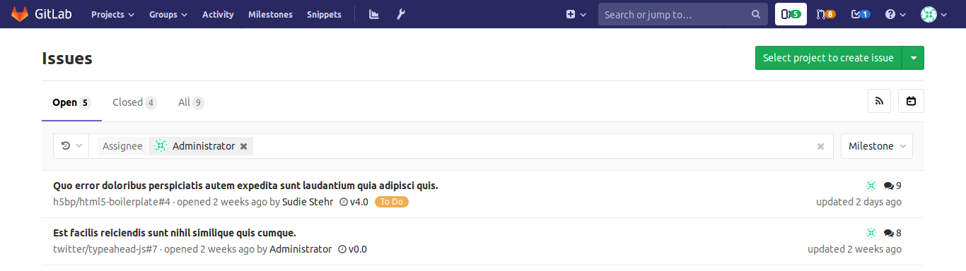 Issues and MRs assigned to you or created by you
