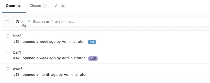 Similar to Issues and merge requests per project, you can also search for issues within a group. Navigate to a group's Issues tab and query search results in the same way as you do for projects.